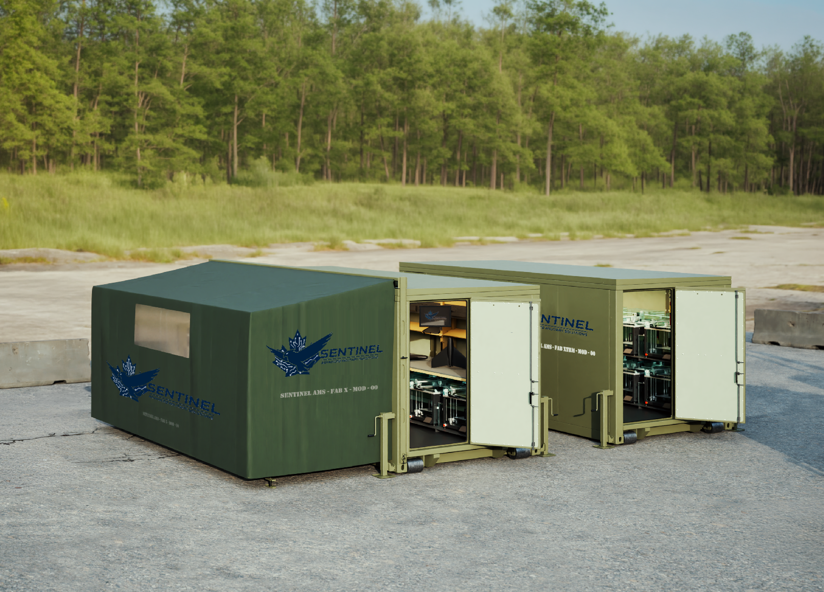 Sentinel designs advanced modular enclosures that serve as the physical backbone for modern defense operations, including: